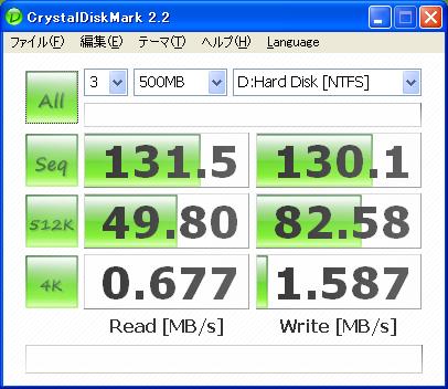 せっかくRAID 0にしたなら速度を見たくなったので定番のテストを実施。参考として、先週の犬で見た1台の結果と比較します。