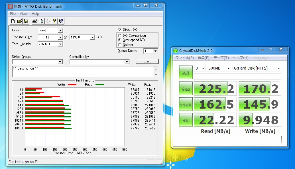 なお、USB3.0時の公称値は、Read:200MB/s、Write:170MB/sとなります。
