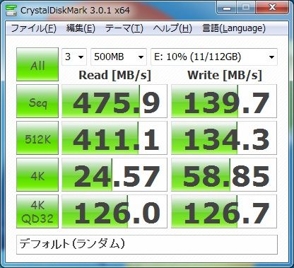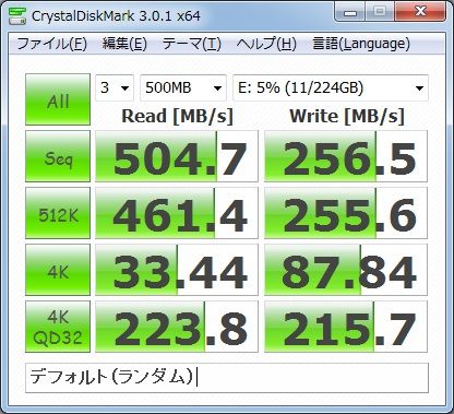 本製品はCrystalDiskMarkをデフォルト設定で計測するとWriteが低下しますが、これは仕様です。