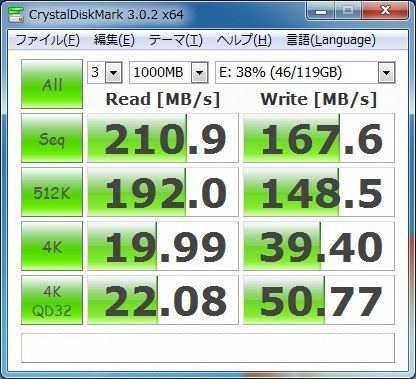 念のために前面USB3.0の速度もチェックしました。