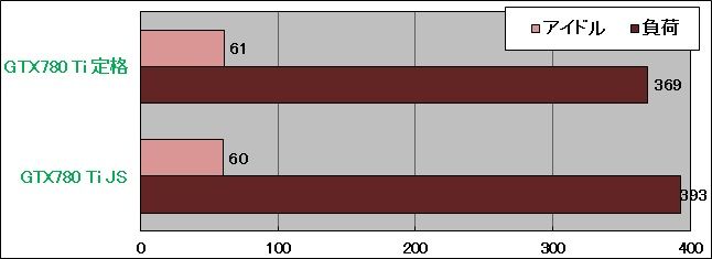 | GTX 780 Ti JS | 60W・34℃ | 393W・63℃ |