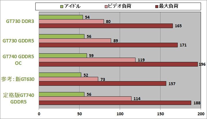 | GT740 GDDR5 OC | 59W | 119W | 196W |