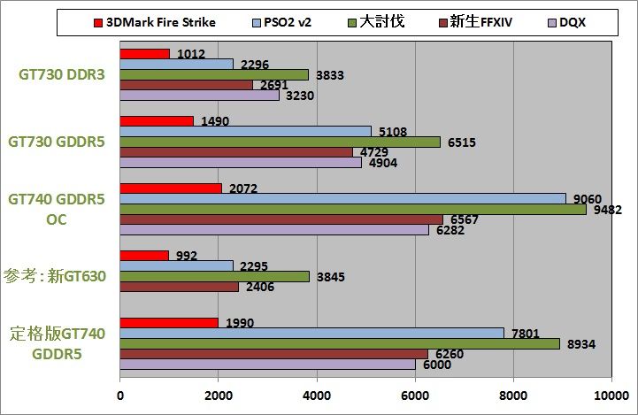 | GT740 GDDR5 OC | 2072 | 9060・4542 | 9482 | 6567・3729 | 6282 |
