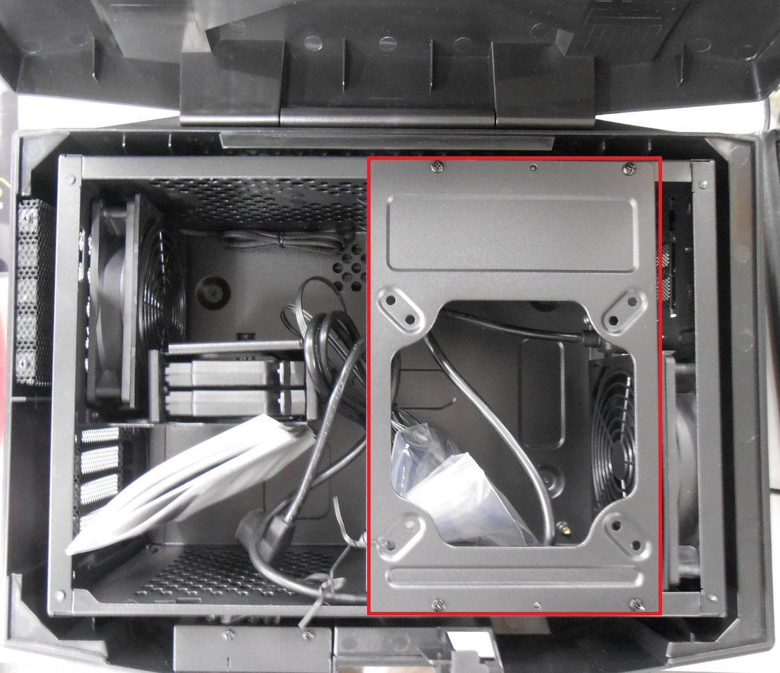 なお、赤枠の部分は12cmファンや簡易水冷ラジエーターを取付可能です。